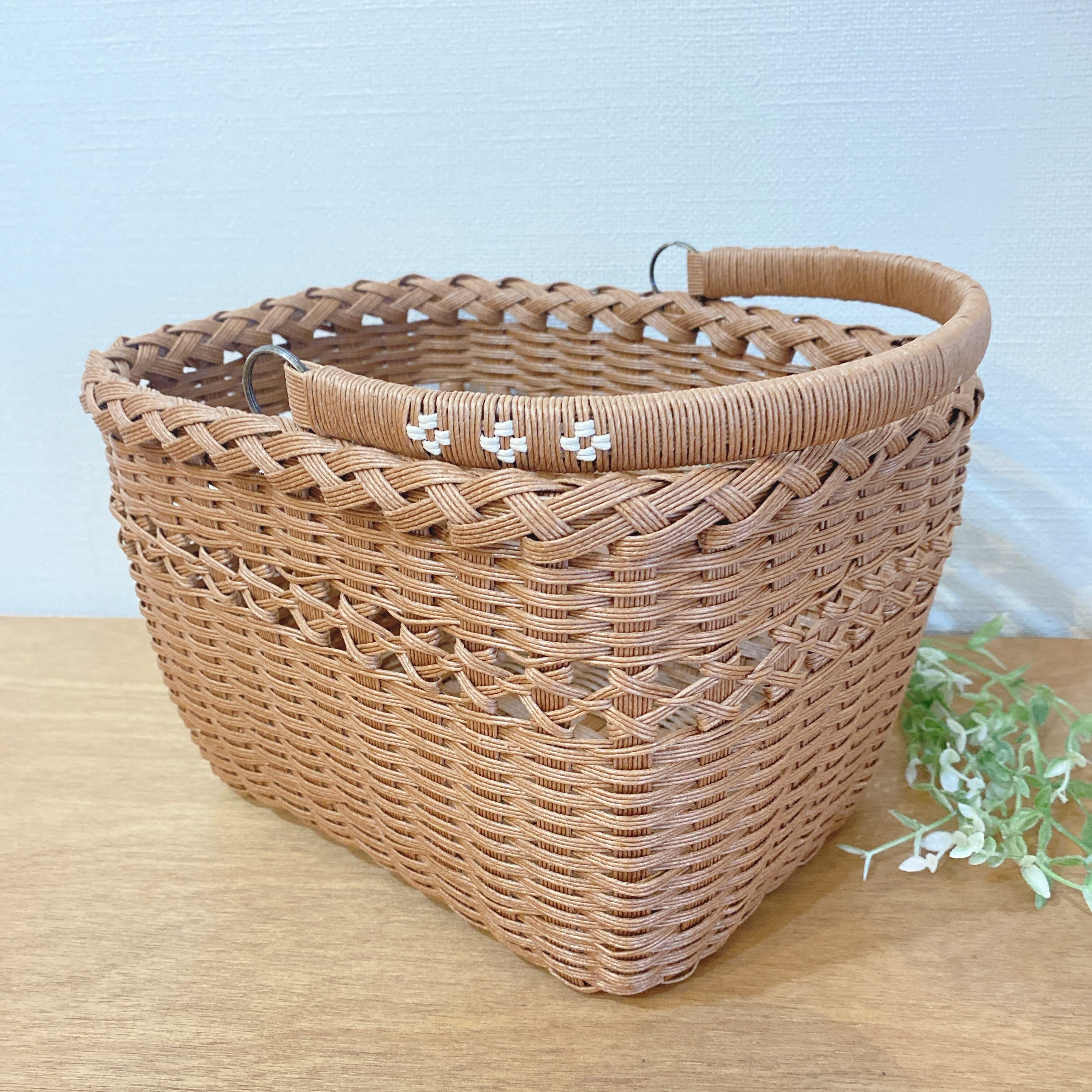 紙バンドしっかりと編み、ニス塗装で仕上げました。