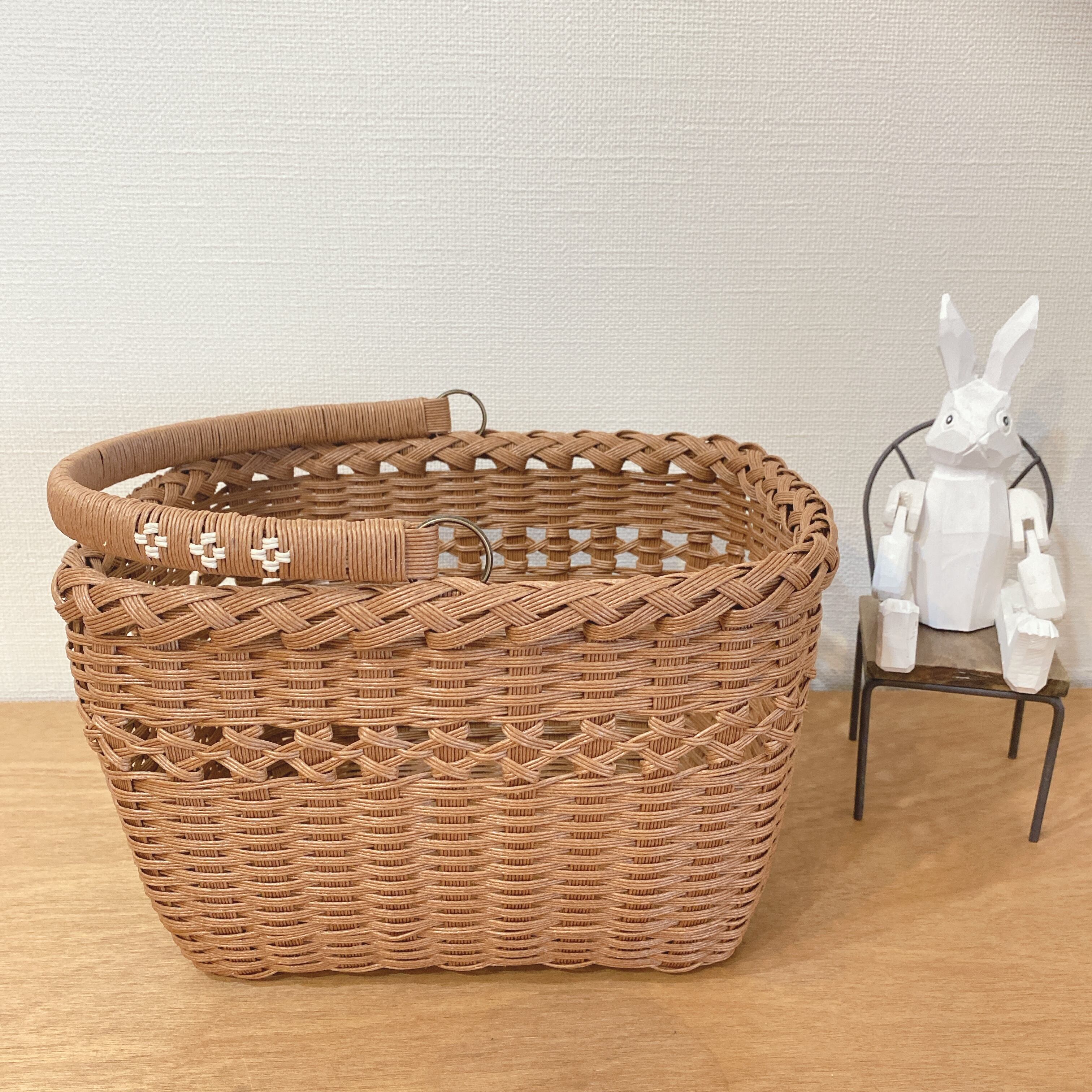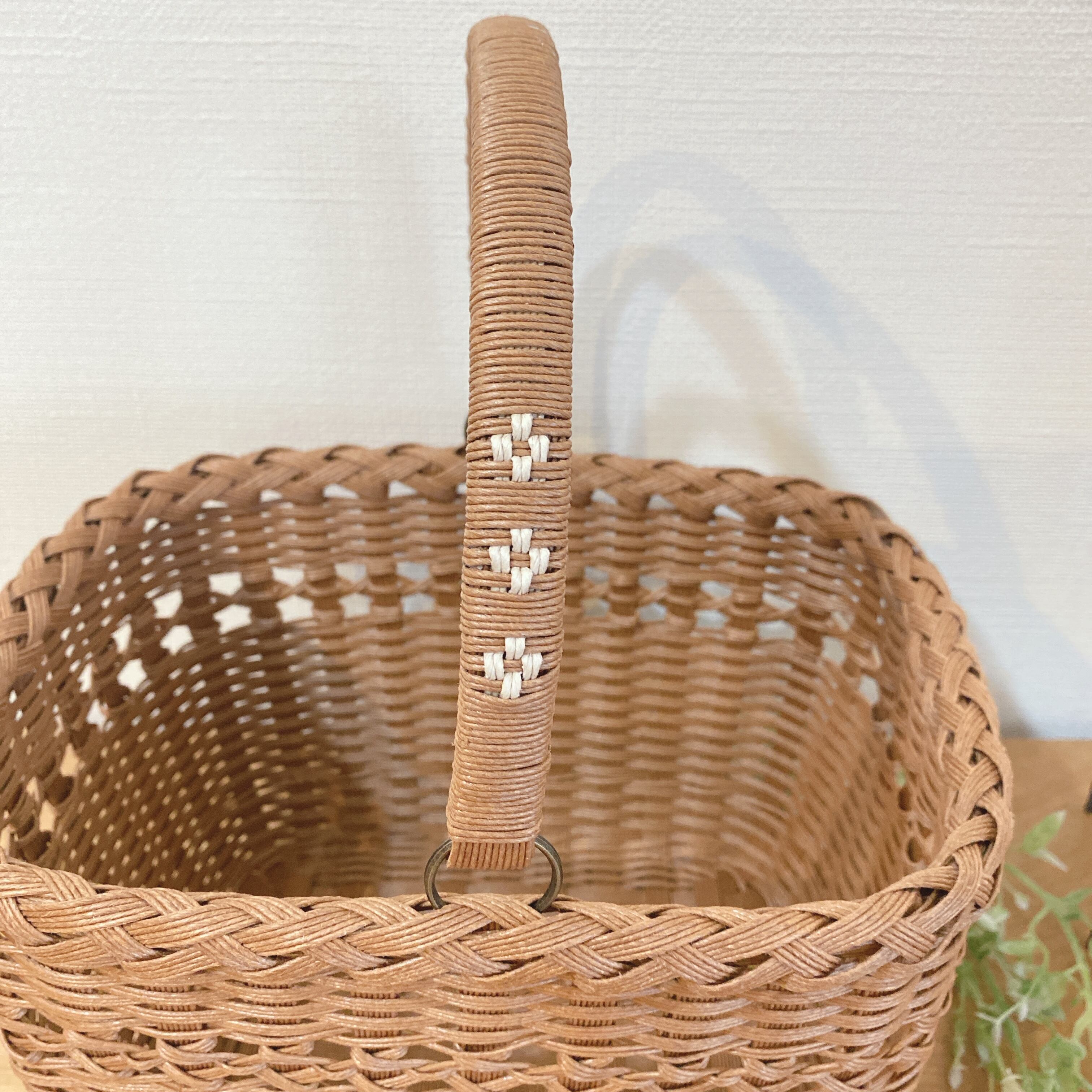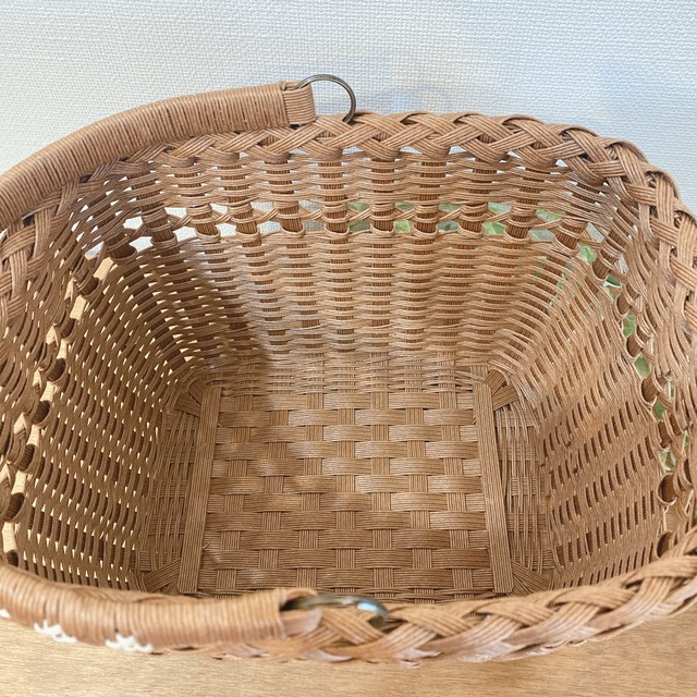 丸っこいフォルムに持ち手に編み込んだ小花模様がポイント