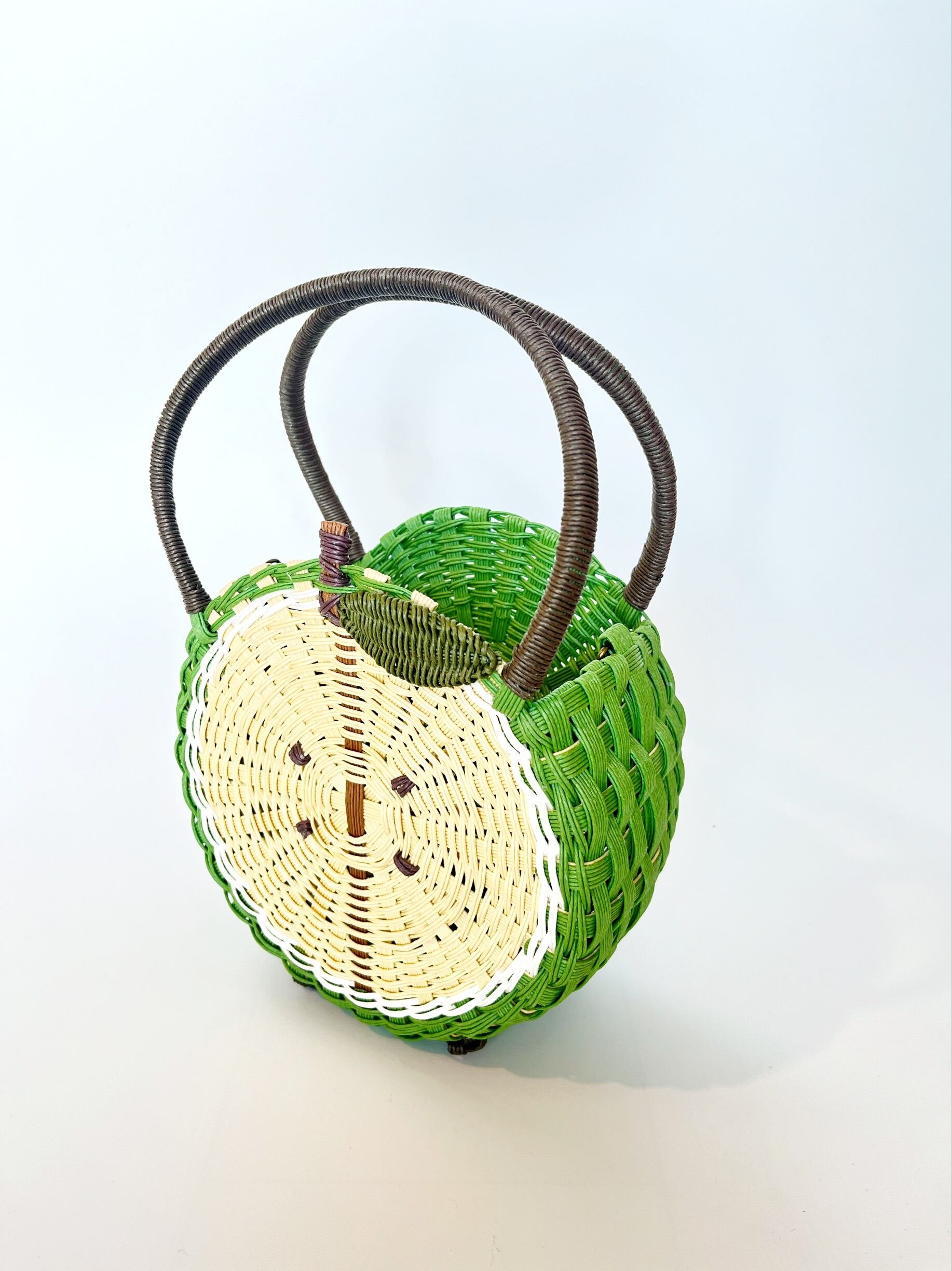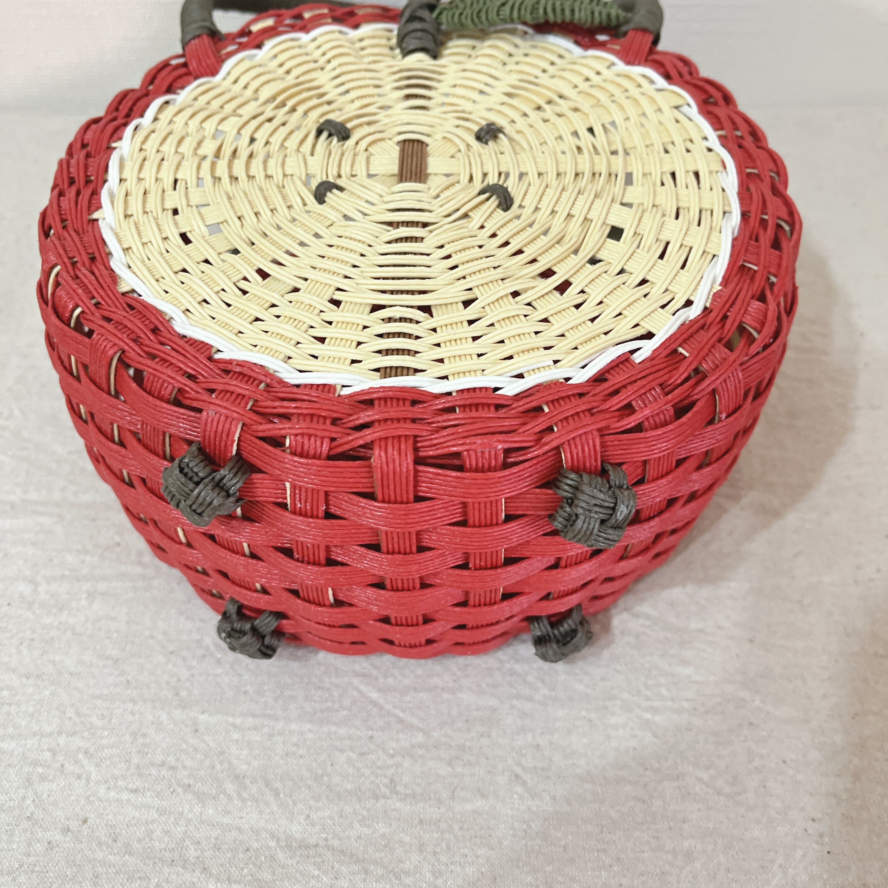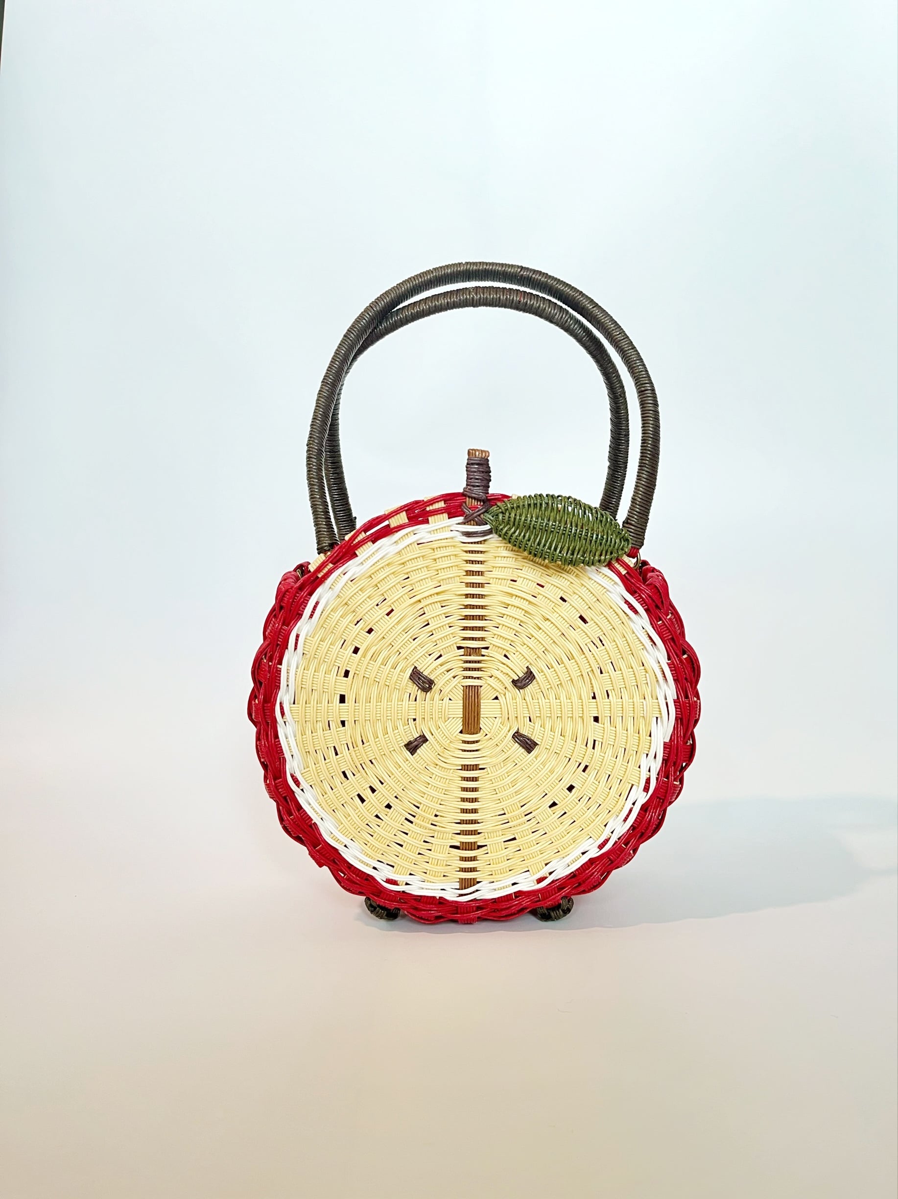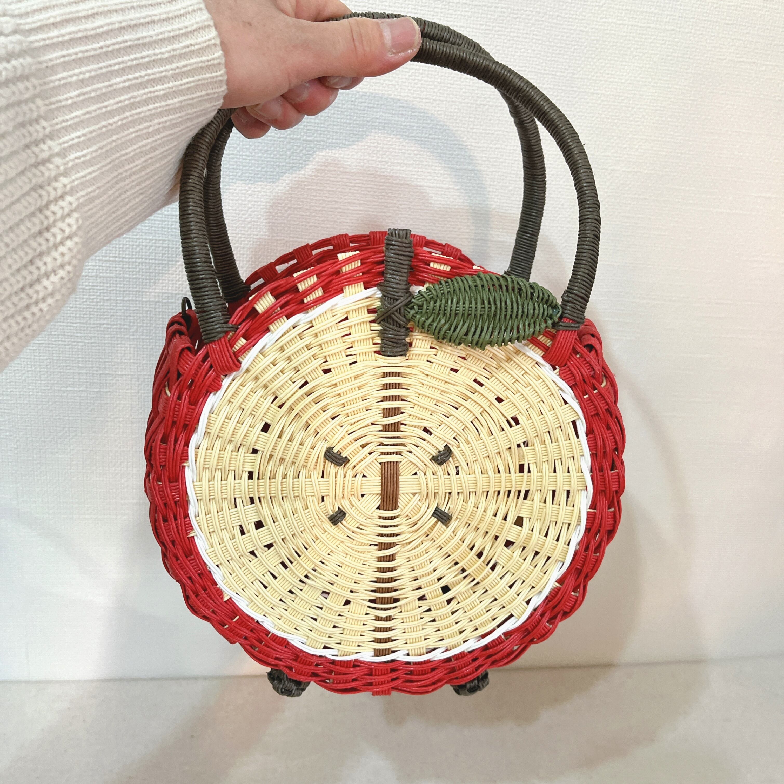 かわいらしいリンゴのデザインが魅力のかごバッグです。