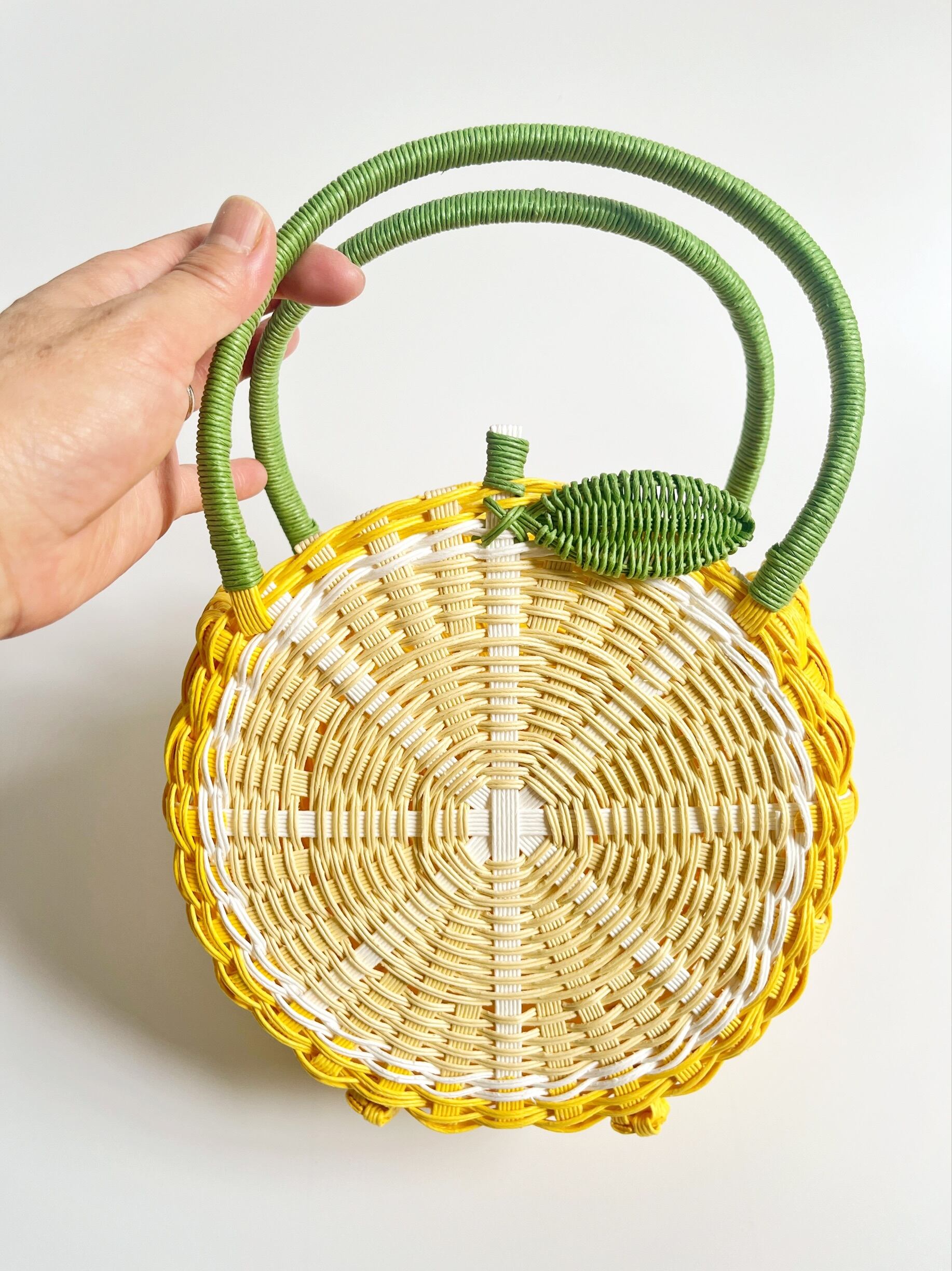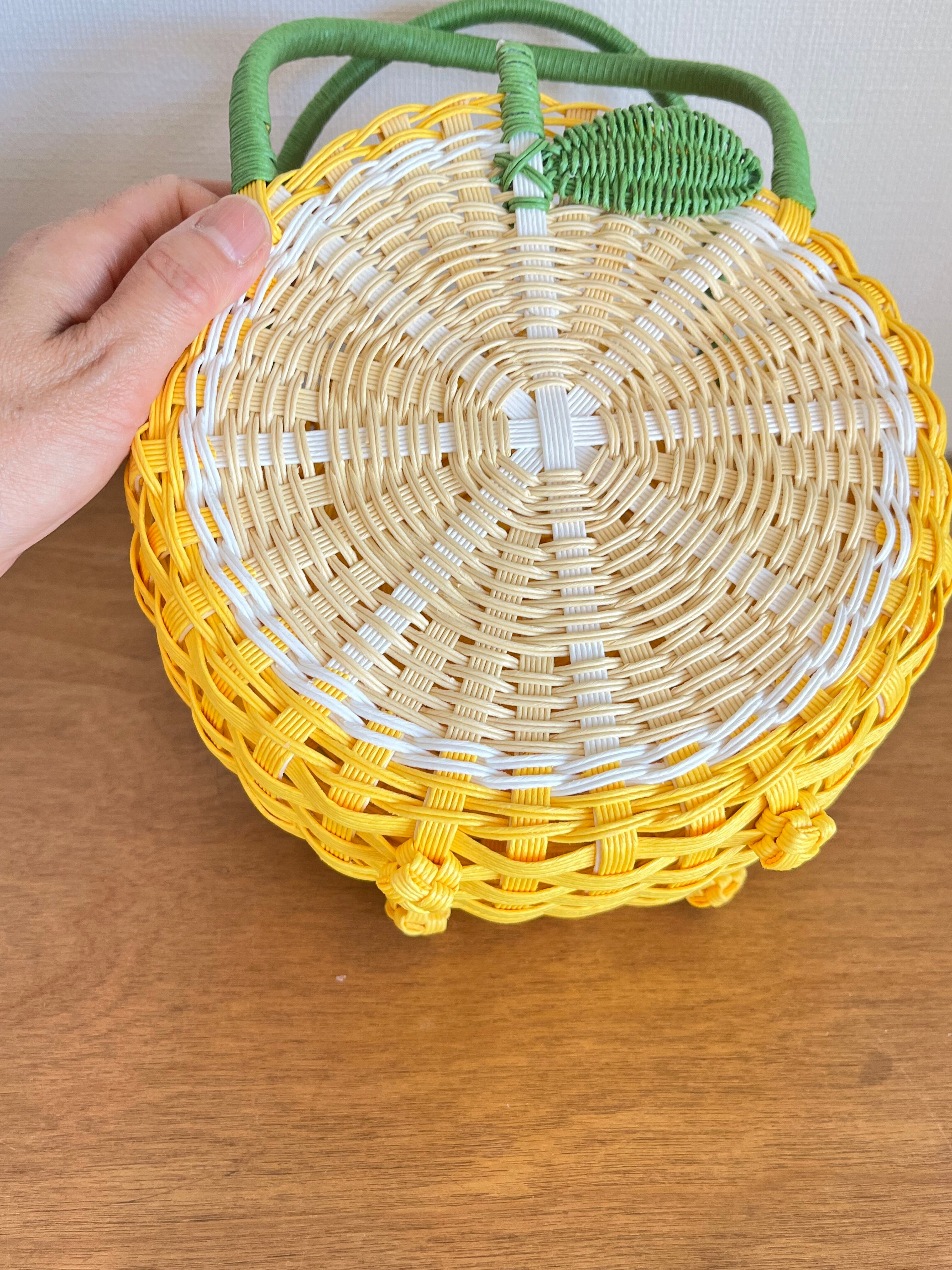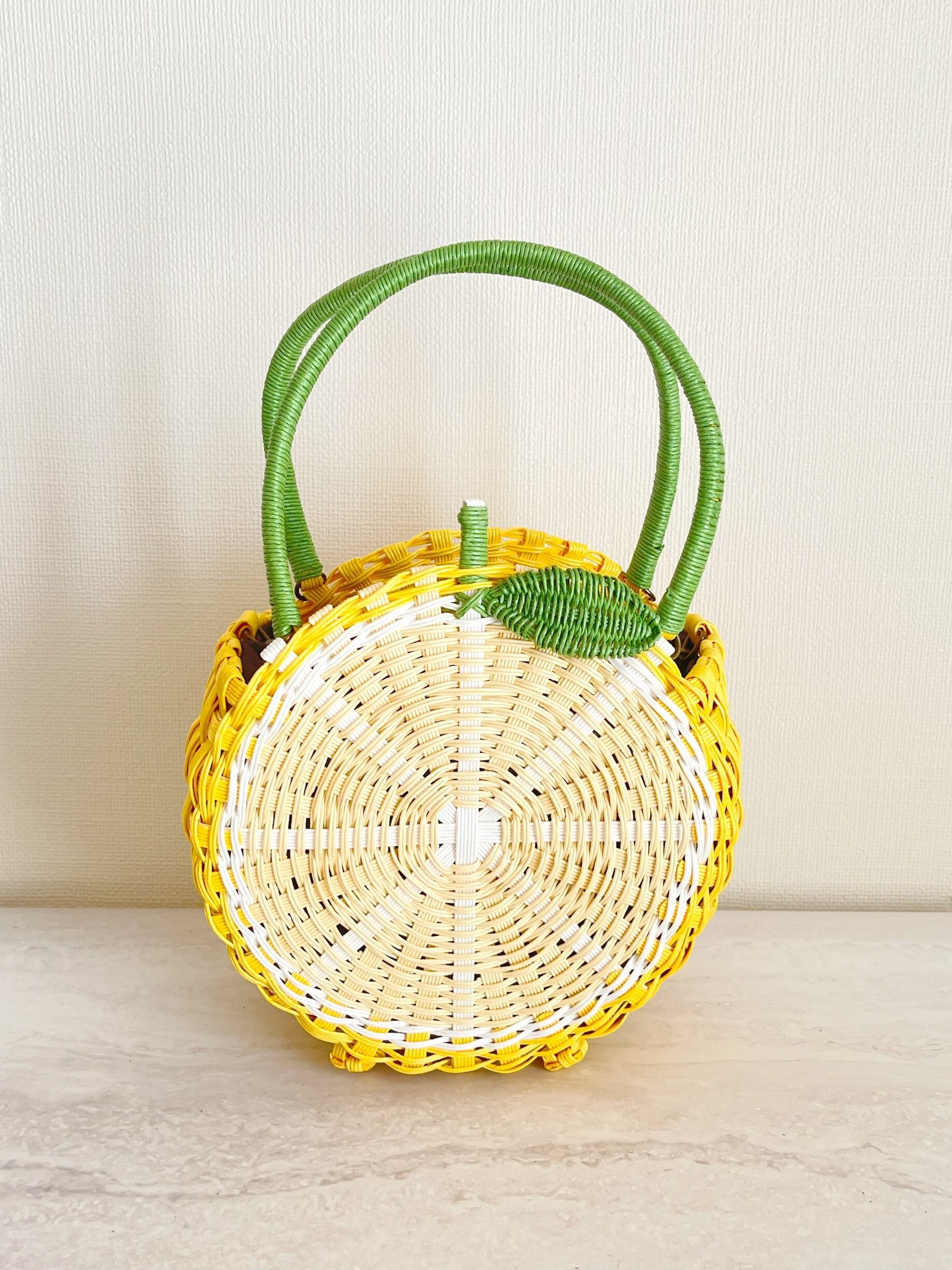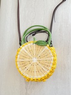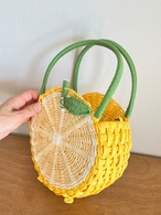 手芸用の紙バンドでまあるく編み上げた、レモンの形のカゴバッグです。